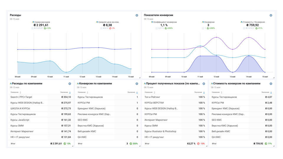 С помощью дашборда, вы с легкостью, сможете структурировать большой объем информации из разных источников;