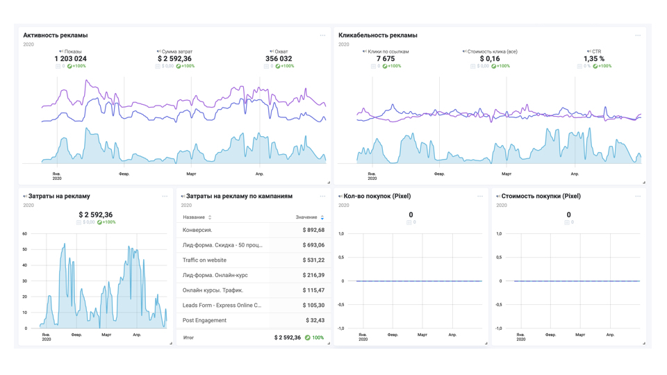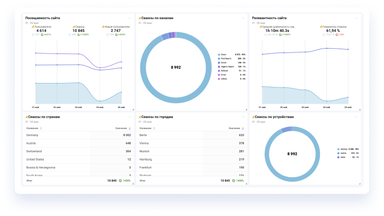 Вы сможете собрать всю статистику на одном экране без привлечения специалистов всего в 1 клик;
