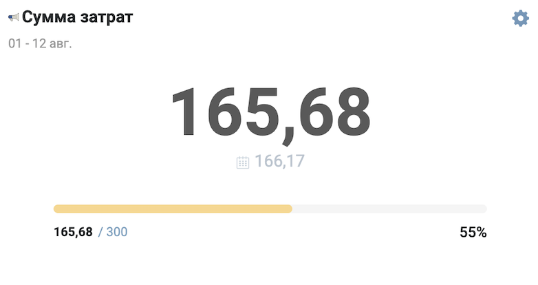Наблюдайте за суммой расходов на рекламу Facebook Ads. Назначайте ваш рекламный бюджет как цель и отслеживайте «план/факт» затрат на рекламу в Facebook.