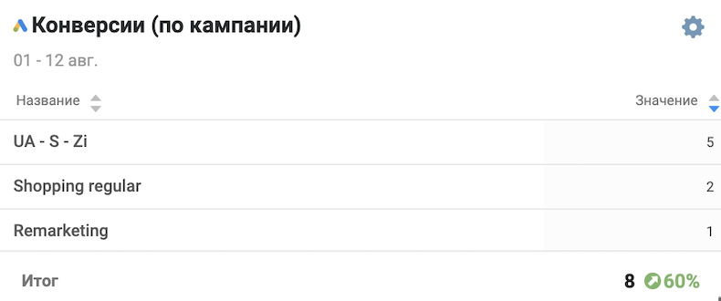 Виджет #10 - Конверсии по кампаниям (Google Ads)