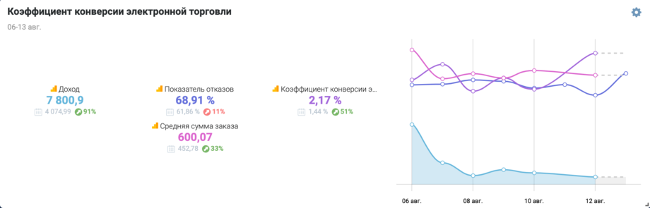 Какой коэффициент конверсии, показатель отказов и какой средний чек?