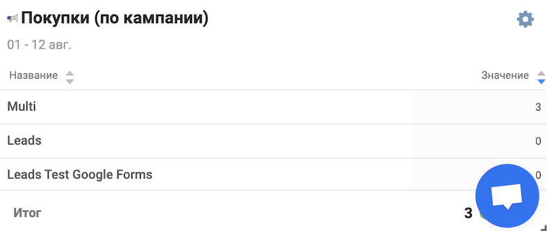 Виджет #12 - Покупки по кампаниям (Facebook)