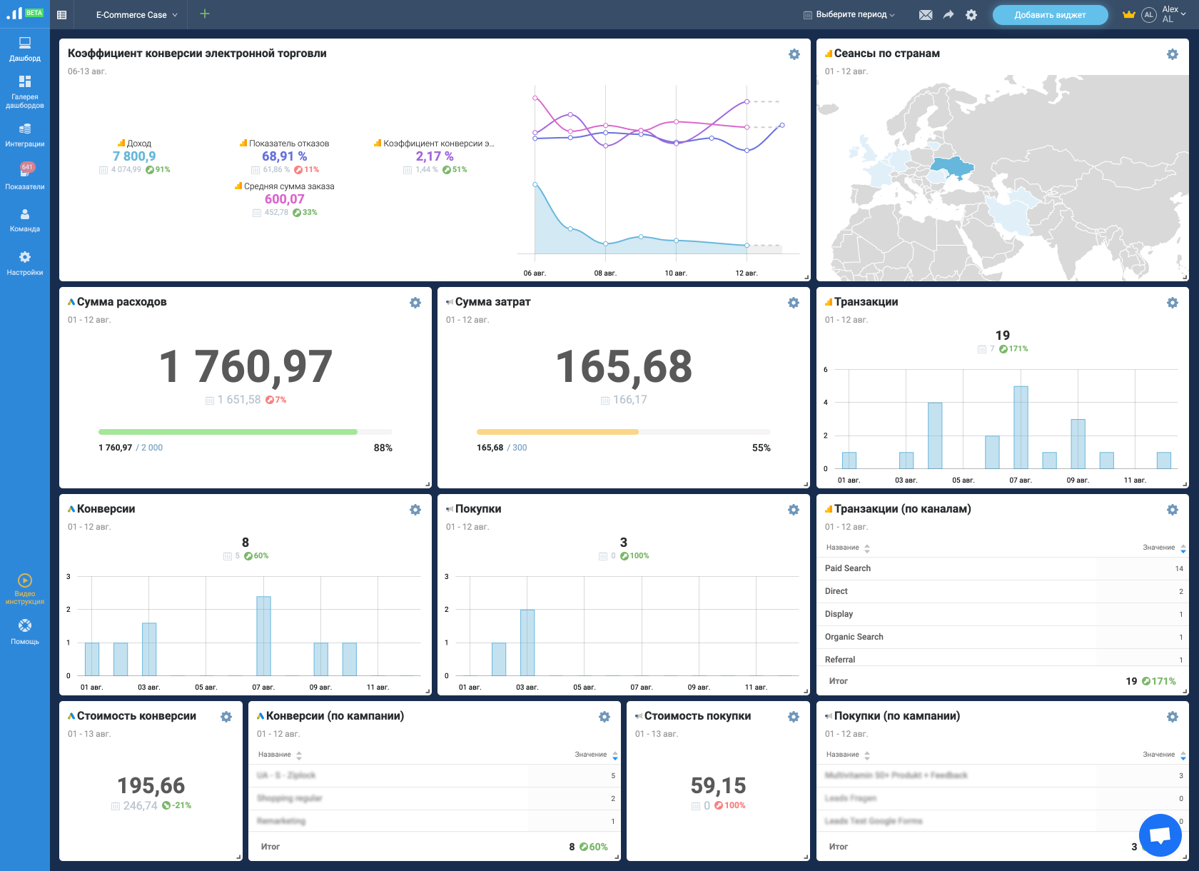 Следите за продажами, затратами и изменениями. Любой дашборд можно донастраивать и выводить на него дополнительные метрики.