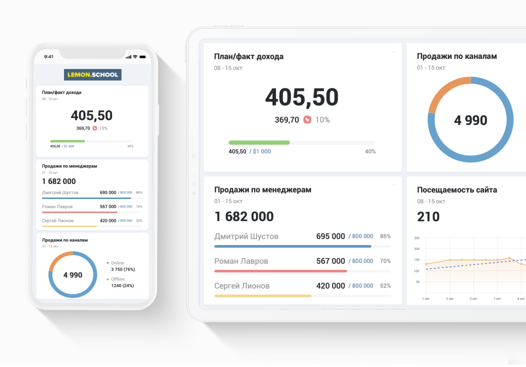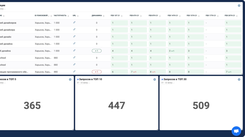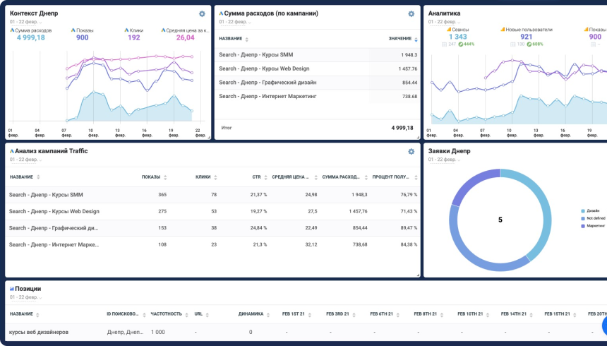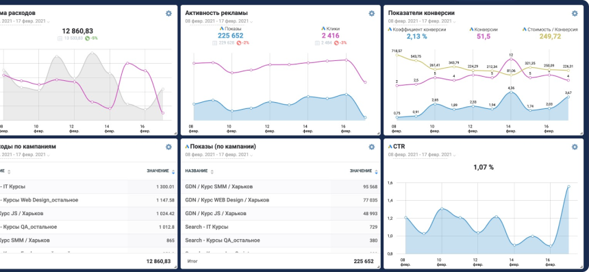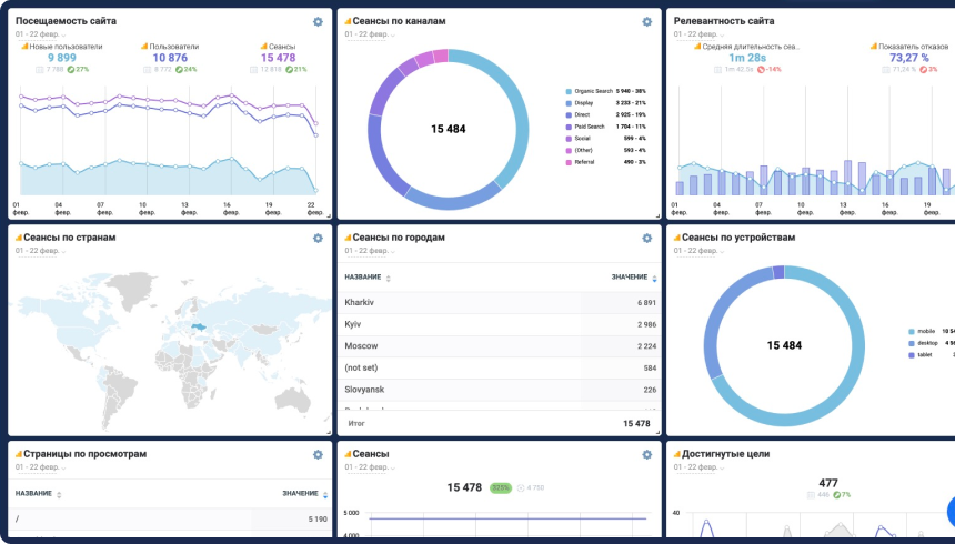 Сеансы, посещаемость сайта (данные тянутся из Google Analytics);