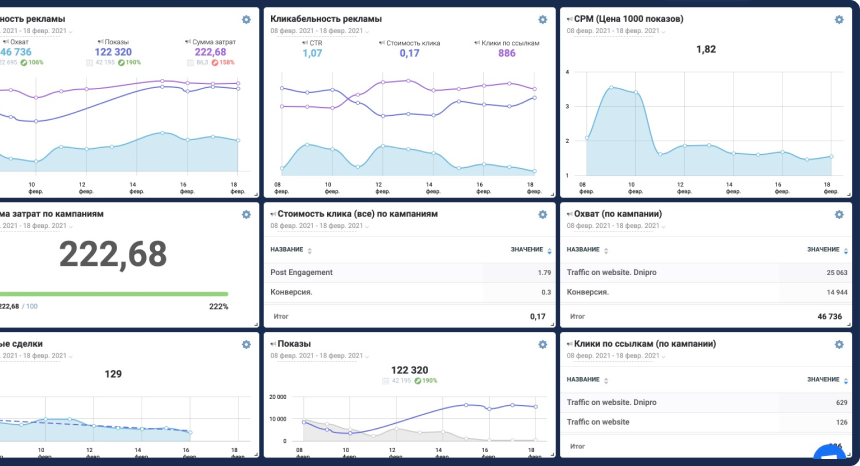 Расходы на таргетированную и контекстную рекламу; новые посты в Instagram, количество лайков.