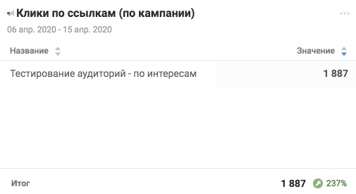 Виджет #7 - Клики по ссылкам (по кампаниям)