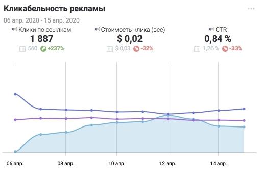 CTR показывает, сколько кликов по ссылке получила ваша реклама в сравнении с количеством ее показов.