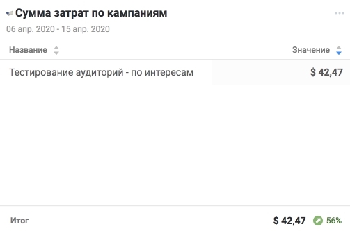 Виджет #4 - Сумма затрат по кампаниям