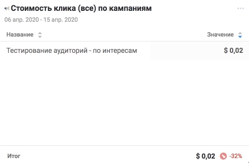Виджет #5 - Стоимость клика по кампаниям