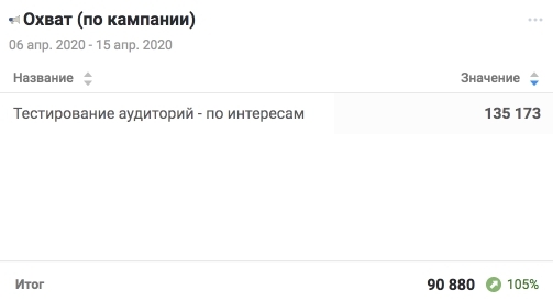 Количество людей, которые хотя бы один раз увидели вашу рекламу с разбивкой по кампаниям.