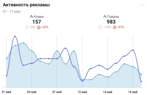 Данный виджет состит из 2-х метрик: Показы и Клики