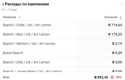 Виджет #6 - Расходы по кампаниям